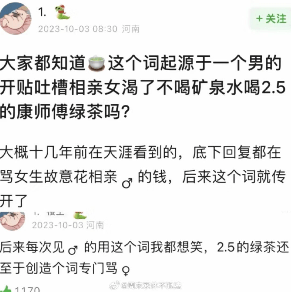 也有看過在網路上,女性發表了一則她自己的意見,只是不符合某些人的意,就被人家叫綠茶🍵