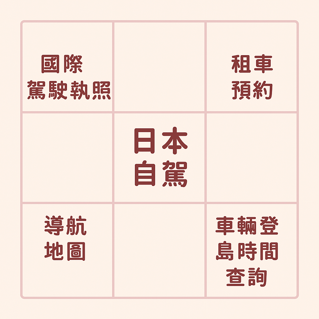 例如我規劃了日本行,並且想在日本自駕,關於自駕的項目可能有以下四項,提早想到了可以將這些事丟給別人做!我就交辦給男友,因為他上夜班,早上可以趁監理站開放時間幫我們代辦駕照日文譯本。(然後這件事就可以打勾V了)